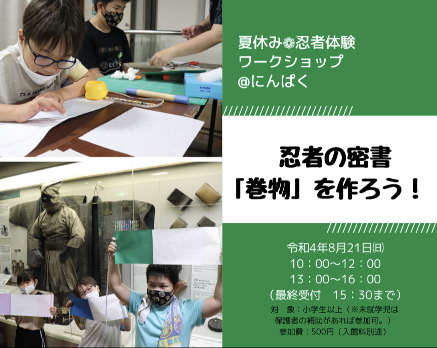 夏休み❁忍者体験ワークショップ【 忍者の密書、「巻物」を作ろう! 】を開催します。