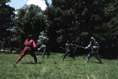 鎖の部分は、相手の首に巻きつけたり、相手の攻撃を受け止めたりする。鎌の部分は、刀のように攻撃に使う。